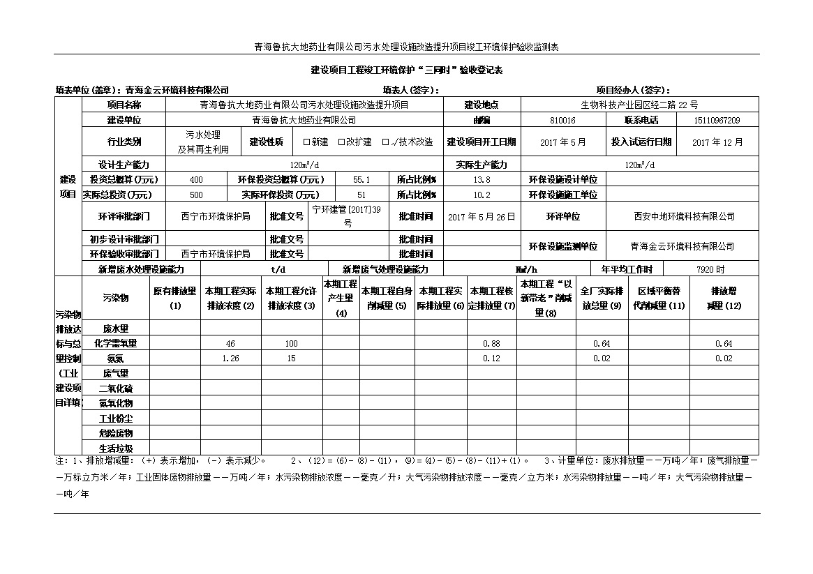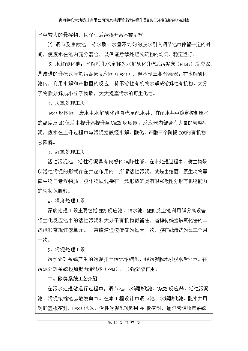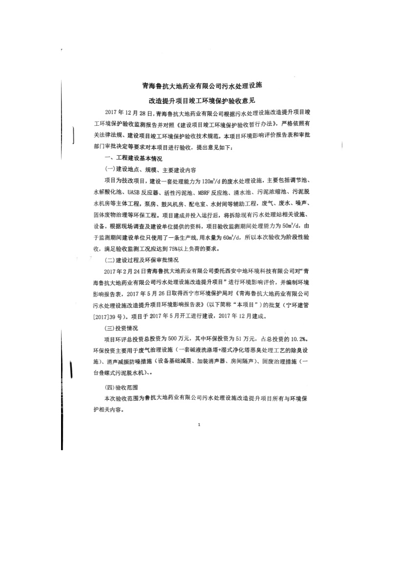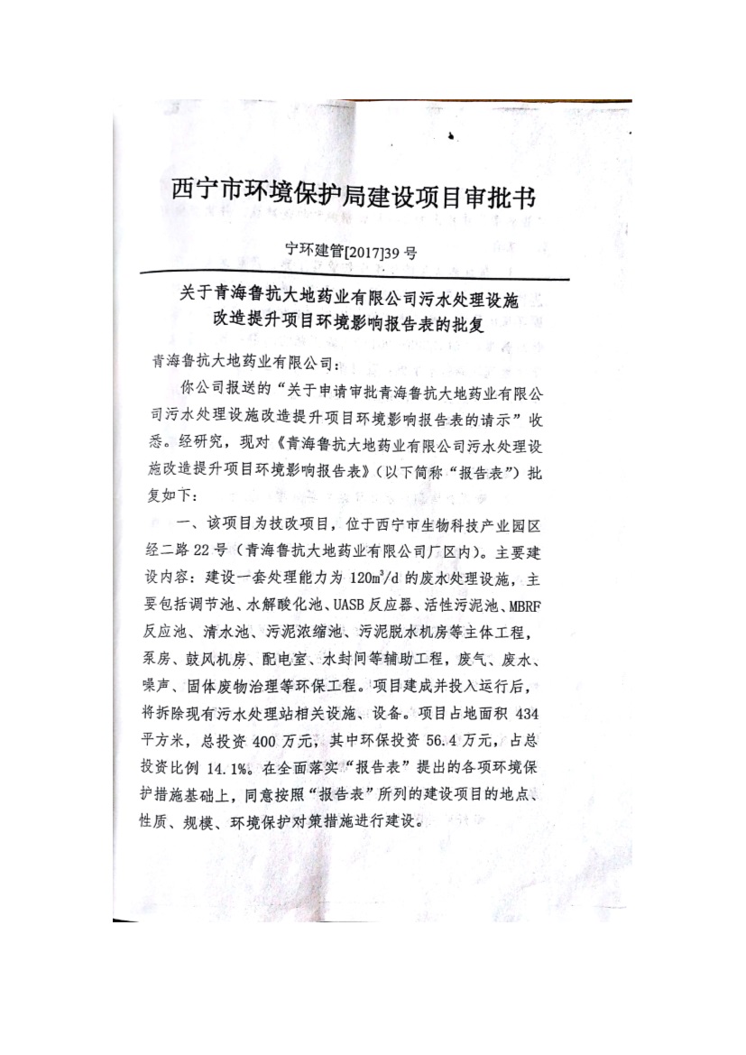 青海魯抗大地藥業(yè)有限公司污水處理設(shè)施改造提升項(xiàng)目